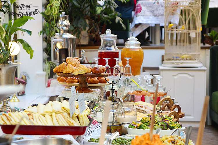 Омлет, яичница, пашот, сырники, салаты, блинчики, плюшки, пышки, каша, сливки, сметана, варенье, ветчина, колбаски, рыба, горячие тосты, круассаны, чай, кофе и игристое!
