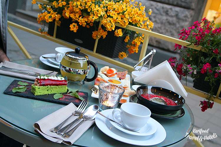 Кенар в клетке, тапер за пианино, изящная арфа, стеклянная прозрачная крыша, шахматы, белые скатерти, шампанское и десерты с самого утра — завтрак в культовом городе просто обязан начинаться в культовом месте.