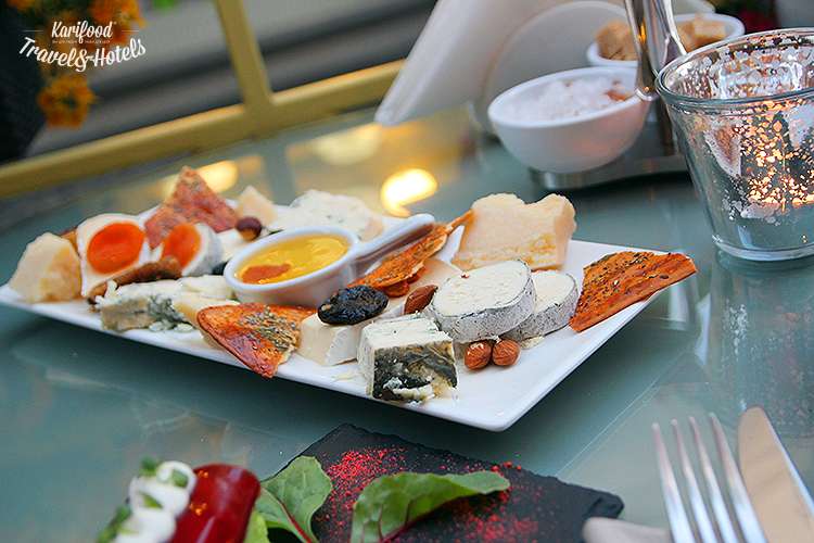 Немного завидуем тем, кто успевает съедать все горячие блюда из меню, но это не повод проходить мимо открытой террасы с жёлтыми цветами. Во-первых, богатая сырная тарелка здесь — пожалуй, одна из лучших в Украине, к сырам подают чипсы со злаками, мёд, орехи, немного фруктов, и, честно говоря, она вполне тянет на легкий ужин и на сытный десерт.