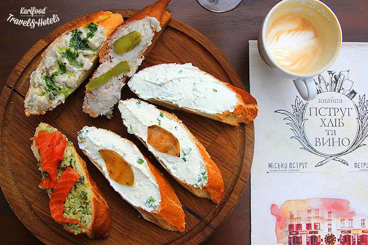Пструг, хлiб та вино — один из тех ресторанов-концептов, где крохотный исторический эпизод забавно и с толком обыгрывается лаконичным меню, простой едой и щедро приправлен атмосферой сказки.