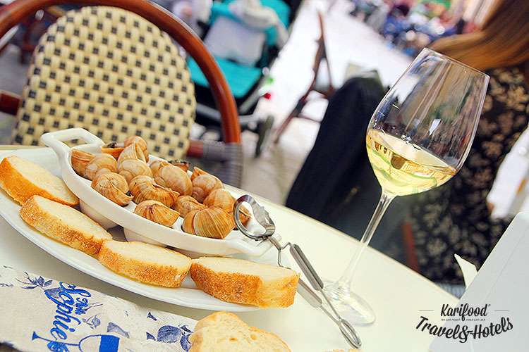 Улитки, запеченные под разными соусами, от трюфельного и бешамеля до маринары — главный специалитет ресторанчика, подают их в фарфоровых эскарготьерках порциями по 6 или по 12 штук.