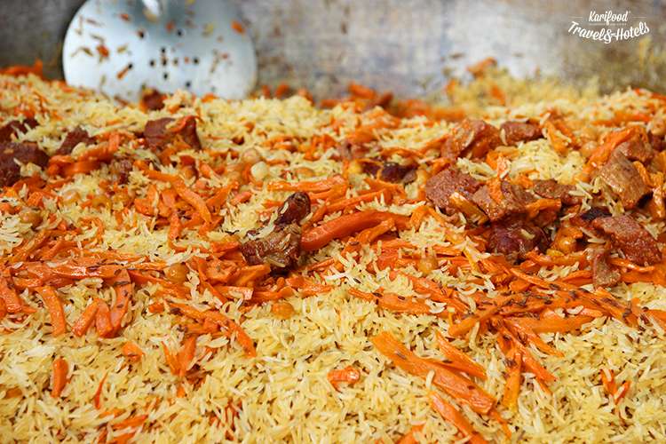 Перший же плов, який ми надибали, виглядав розкішно: з яскравими червоними перцями, з печеними у казані родзинками, з барилами м’яса, які не одну годину умлівали в казанку і тепер легким дотиком вивільнялись від кісток. На моє прохання продавець вивудив із казана великий червоний перчик («Дуже гострий, дуже!» — запевняє він) і поклав на гірку з пловом.