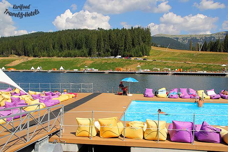 Весь комплекс вместе с пляжем вырос на берегу искусственного озера Молодости — самого большого в Украине. Иногда его шутливо называют Карпатским морем.