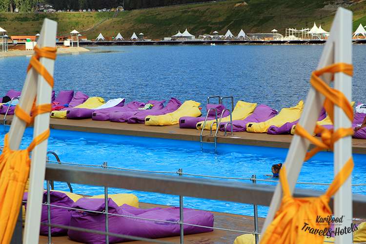 Зона активного отдыха – катамаранов, водных лыж, гидроциклов отделена от «пляжного шельфа», поэтому плавать и плескаться в озере можно, не беспокоясь о том, что в вас на полном ходу влетит зазевавшийся вейкбордер. Ну, и конечно, спасатели следят за тем, чтобы отдыхающие не заплывали за буйки, ограждающие водные трассы от зоны купания.