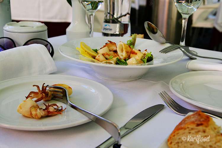 Как полноценно оформленный фастфуд, жареные дары моря обитают в самых посещаемых туристами местах. Продаются в бумажном пакете, столовым прибором служит тонкая деревянная шпажка, под горкой горячих кальмаров и креветок лежит картофель фри.