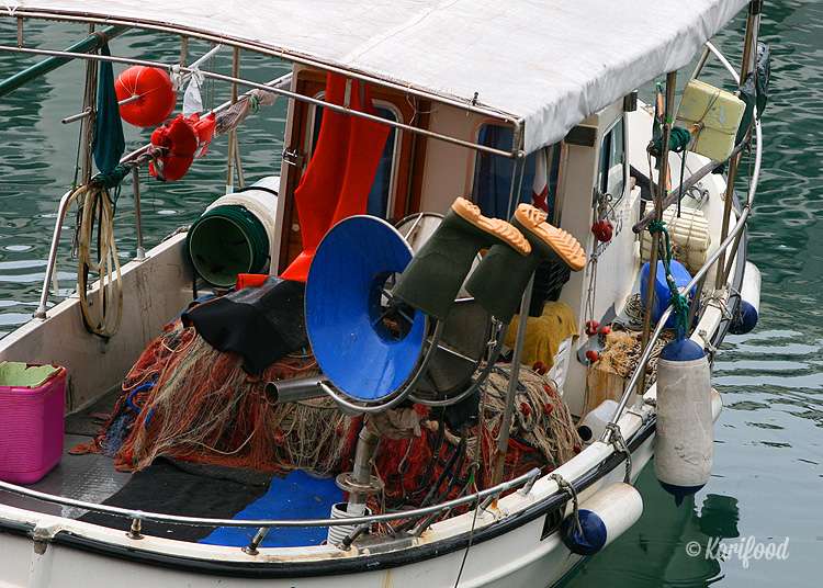 А между тем, именно здесь, в гудящих голосами каменных клетушках торгуют самыми, пожалуй, вкусными, жареными кальмарами и прочими мелкими морскими гадами. Лавка с жареными дарами моря тут всего одна, как только она открывается, её со всех сторон принимаются штурмовать местные жители.