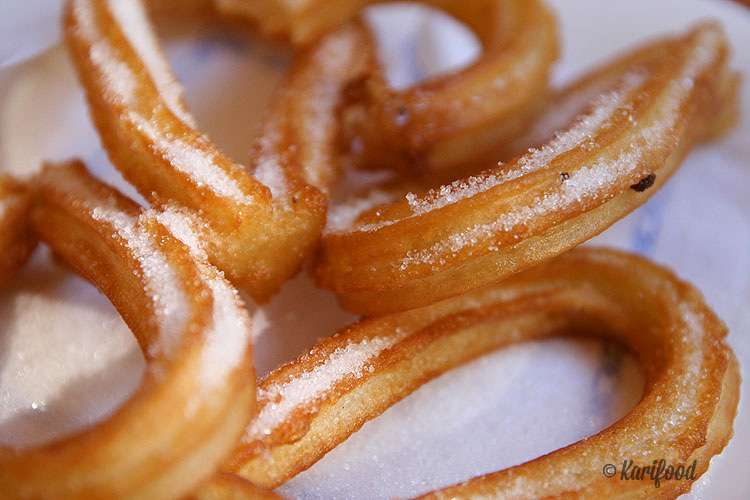 Чуррос (исп. сhurros) — сладчайшее обжаренное в масле заварное тесто в форме петелек или толстых цельных «колбасок». Часто в сечении имеют форму звезды. По вкусу очень близки к пончикам во фритюре, но «петелькообразная» форма категорично заявляет: son churros e basta! Мол, чуррос — это вам не какие-нибудь пончки!